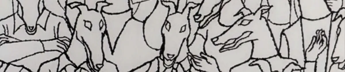 Una carrera de perros es interrumpida por un maestro de ceremonias, quien ata peces a los collares de los perros y los hace correr en círculos. La multitud está indignada, pero el maestro de ceremonias insiste en que el público no está en mejor situación que los perros. Al final, el maestro de ceremonias es asesinado y la carrera continúa, pero una única rosa roja brota de la sangre del maestro de