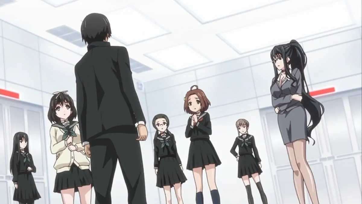 Keisuke Takatou wakes up in a featureless white room, unaware of how and when he arrived. While exploring his whereabouts, he notices six familiar girls huddled around a large monitor—his childhood friend Kanae Hokari, the class president Miyakou Ando, his English teacher Natsuki Aoi, his junior Rika Makiba, and his classmates Rinne Byakuya and Nemu Manaka.